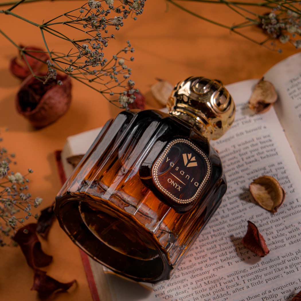 Yasania Amber Woody Onyx reflects one’s essence, traditional on the surface, but with hidden gems. It has invigorating aromatic layers of grapefruit, cardamom, lavender, and patchouli, as well as an aromatic base of sandalwood, white amber, vetiver, and benzoin.